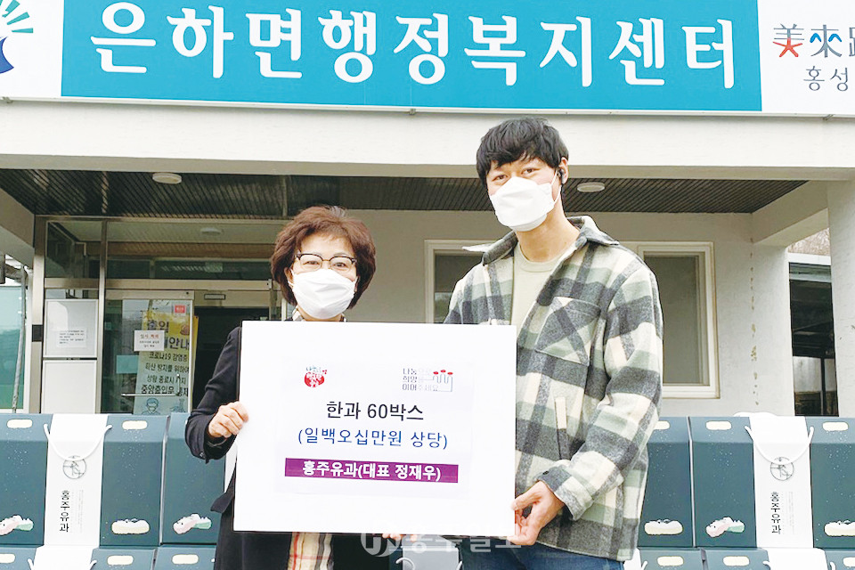 은하면 화봉리 소재 ㈜홍주유과(대표 정재우)가 설 명절을 앞두고 관내 저소득 노인들에게 한과 60박스를 기부했다. 홍주유과는 매년 설 명절마다 지역사회의 소외된 노인을 위해 한과를 기부하며 지역사회를 위한 나눔 실천을 꾸준히 이어가고 있다. 은하면은 전달받은 한과세트를 관내 저소득층 노인 가구에 골고루 전달할 계획이다.