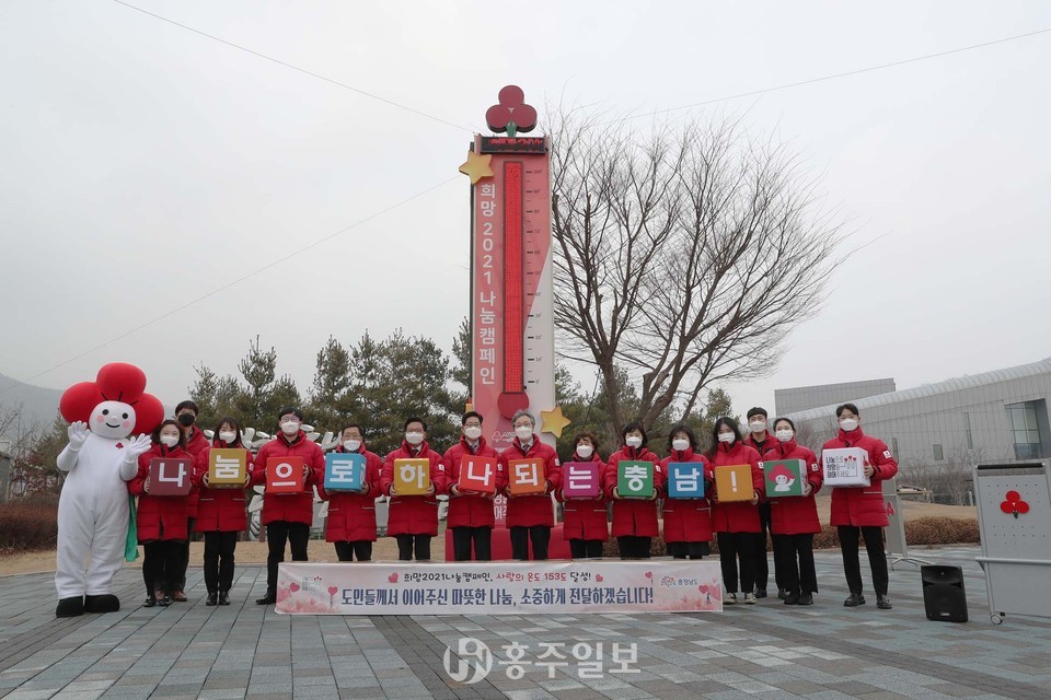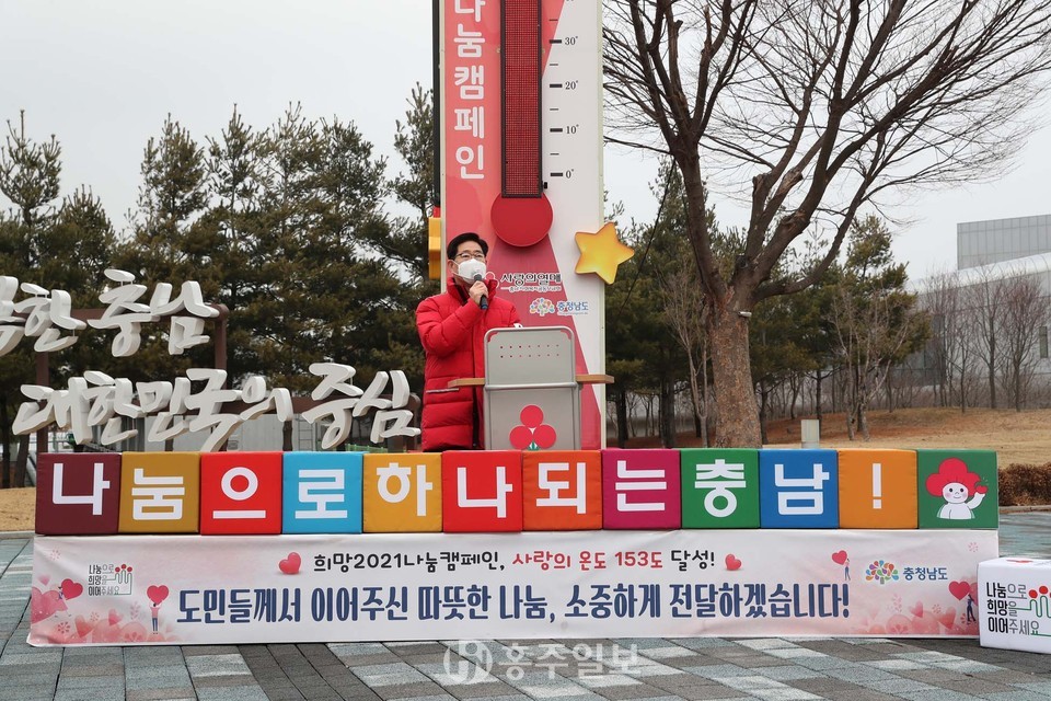 충남도는 지난 1일 도청 앞 사랑의 온도탑 광장에서 양승조 지사, 성우종 충남모금회 회장 등이 참석한 가운데, ‘희망2021 나눔캠페인’ 폐막식을 개최했다.