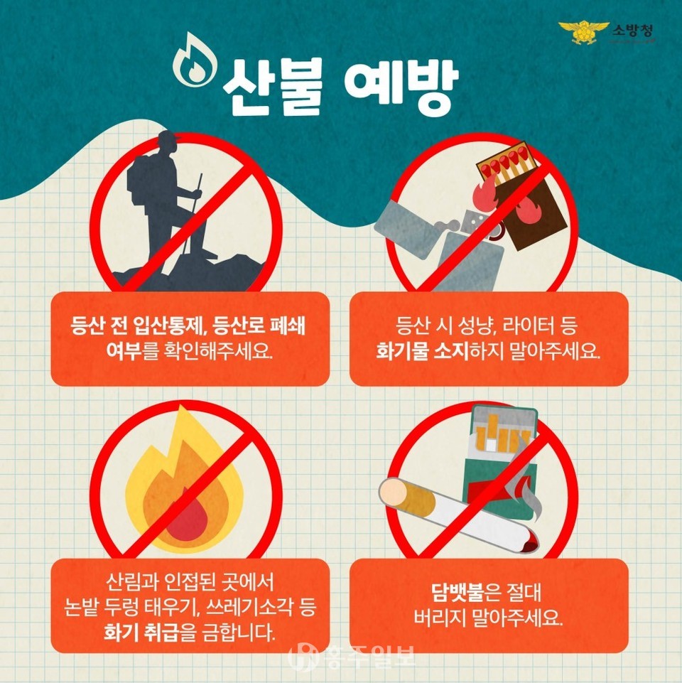 홍성소방서(서장 김성찬)는 다가오는 봄철 건조한 날씨와 강한 바람으로 산림화재 위험이 증가함에 따라 산불예방대책을 추진한다고 밝혔다.