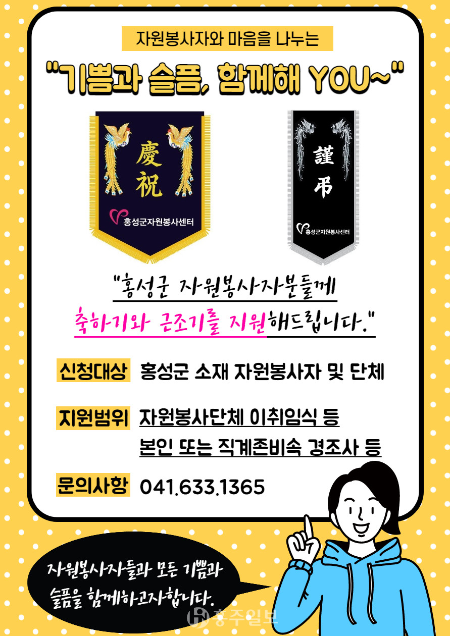 홍성군자원봉사센터(센터장 이동춘)은 자원봉사자들을 위한 인정제도의 일환으로 ‘기쁨과 슬픔, 함께해 YOU’ 사업을 시행한다.