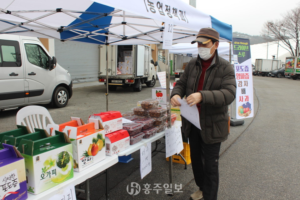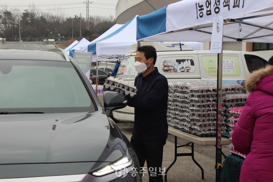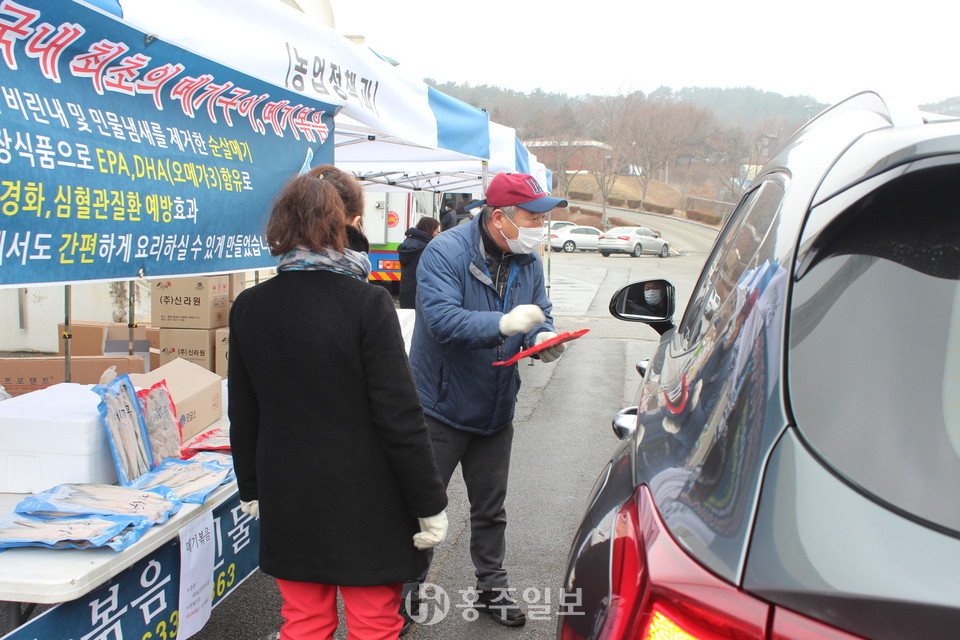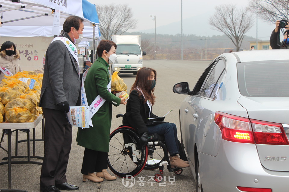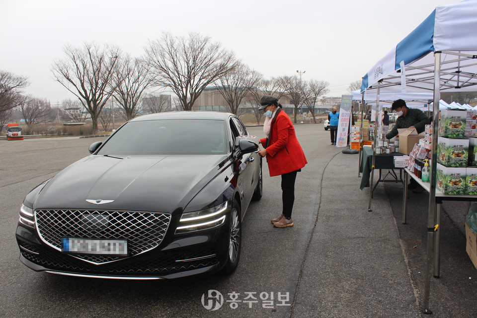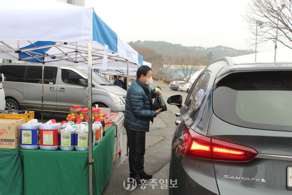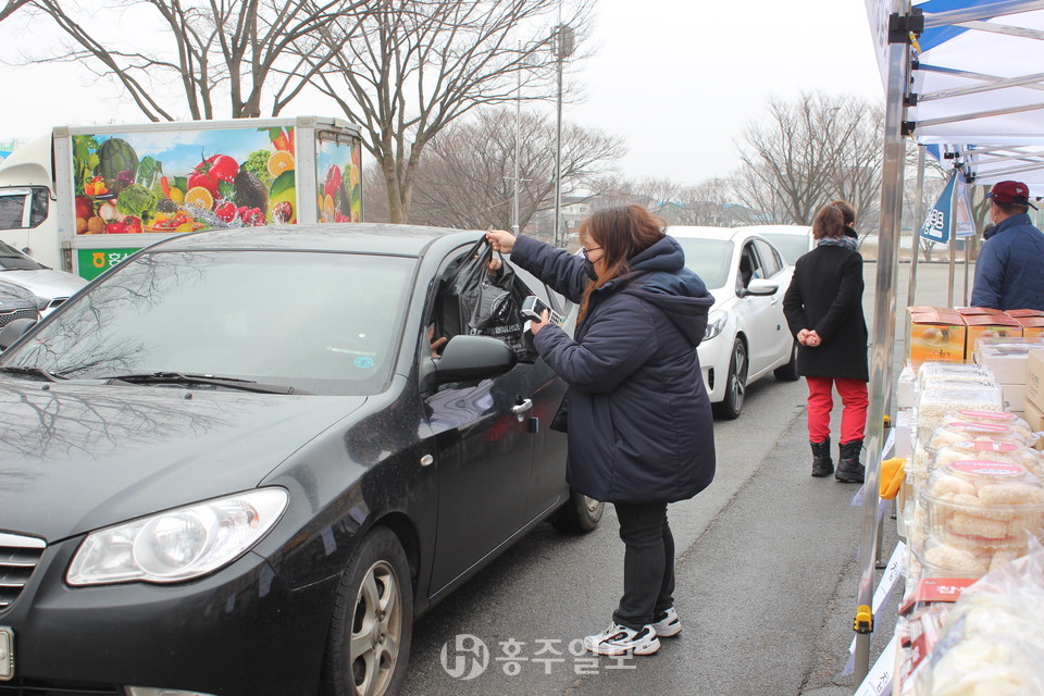 홍성군 식품개발연구회(회장 이환진)와 홍성군 6차산업협동조합(회장 홍병희)이 주관한 ‘미래로 희망장터 드라이브스루’가 지난 6일 홍주종합경기장에서 열렸다.