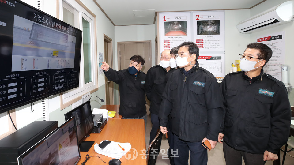 현장을 찾은 의원들은 제어실과 기계실, 방역실, 대인소독실 등을 갖춘 최첨단 세척소독시설을 둘러보고 외부 고압세척·차아염소산 분무와 자외선 소독, 차량내부에 대한 UV살균기 등 작동상태를 꼼꼼히 점검하며 만일의 사태에 대비했다.