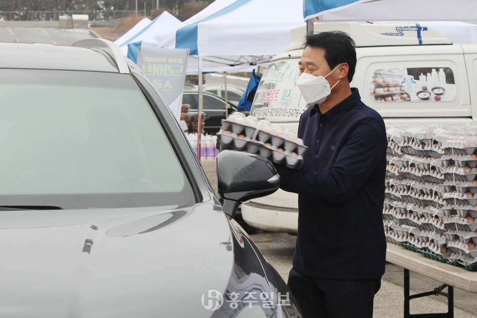 홍성군 식품개발연구회(회장 이환진)와 홍성군 6차산업협동조합(회장 홍병희)이 주관한 ‘미래로 희망장터 드라이브스루’가 지난 6일 홍주종합경기장에서 열렸다.