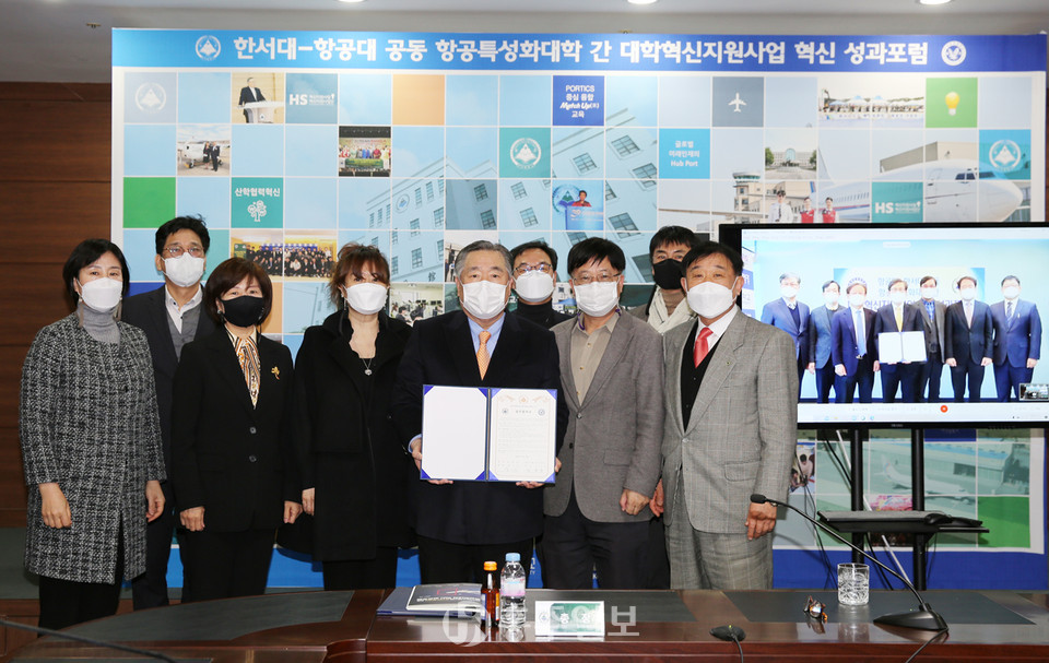 항공 특성화 교육의 선두주자인 한서대학교(총장 함기선)와 한국항공대학교(총장 이강웅)가 특성화와 혁신지원사업 분야의 성과를 교류하고 교육자원의 공유와 상호협력을 위한 ‘항공특성화대학 간 대학혁신지원사업 성과포럼’을 지난 18일 한서대 본관 대회의실에서 개최했다.<사진>