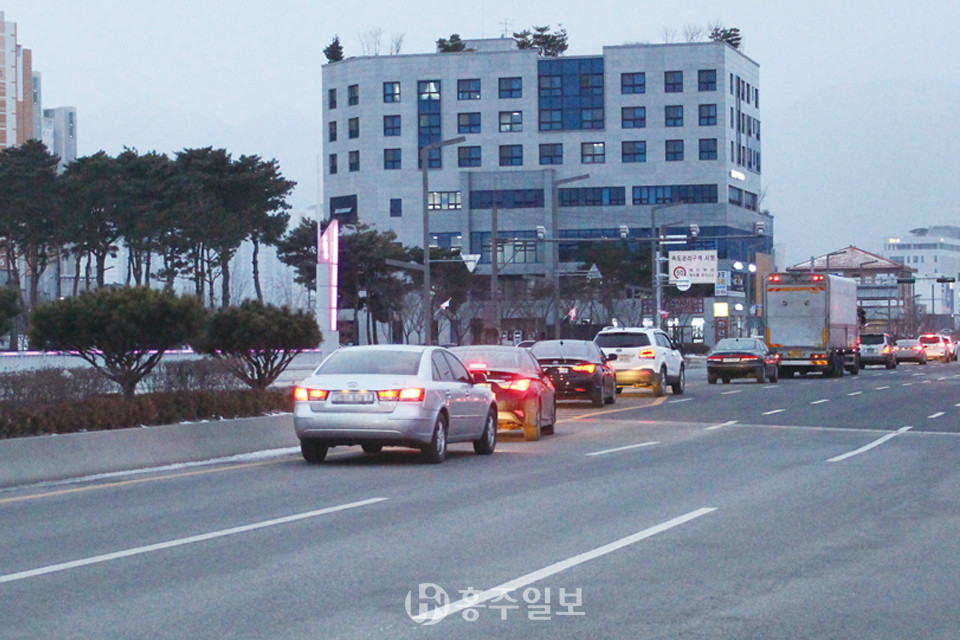 교육청 사거리의 좌회전 전용 1, 2차선에 대해서 홍성군 관계자는 “현재 충남도서관 방향으로는 통행량이 적고 모아엘가 방향으로 다수의 아파트단지가 연결돼 통행량이 많아 좌회전 전용차선으로 두 개 차선을 배정했다”며 “직진 차량의 경우 불편할 수 있으나 내포신도시의 원활한 교통을 위해 양해해 달라”고 당부했다.