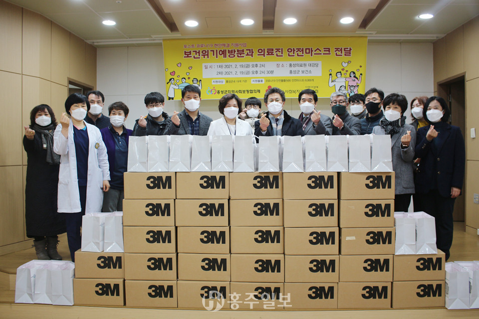홍성군지역사회보장협의체(공동위원장 이용환)는 지난 19일 코로나19 환자의 치료를 진행 중인 의료진들에 N95 안전마스크 8000장을 전달했다.