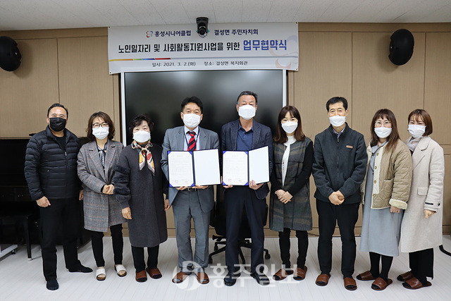 결성면주민자치회(회장 최진호)는 지난 2일 홍성군시니어클럽과 결성지역 어르신 일자리 창출과 지원을 위해 상호 협력을 체결했다.<사진>