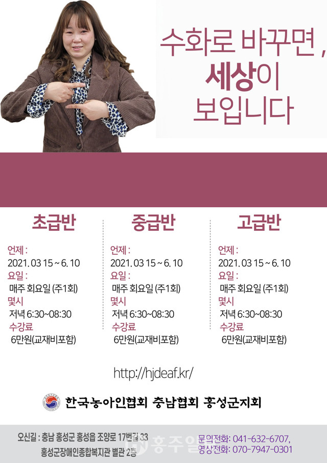 (사)한국농아인협회 충남협회 홍성군지회 홍성군수어통역센터(센터장 김기현)에서 수화교실을 연다.