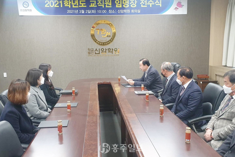 학교법인 신암학원(이사장 이규용)은 지난 2일 홍주중·고등학교 3명의 신규교사에 대한 임명장 수여식을 개최했다.<사진>
