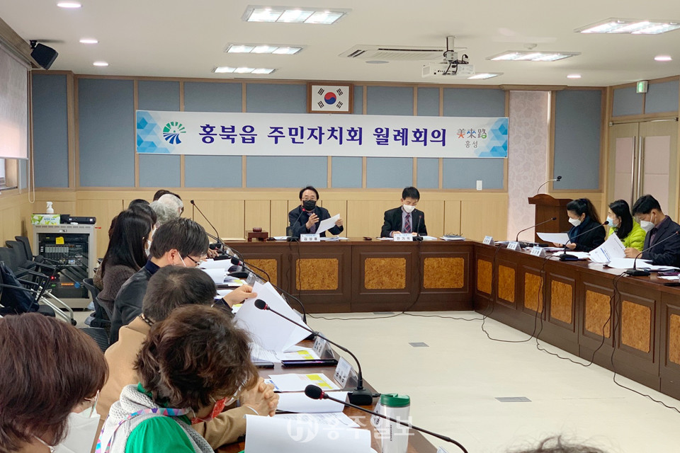 홍북읍주민자치회(자치회장 김상홍)는 지난 8일 홍북읍 주민복합지원센터 회의실에서 월례회의를 개최했다. 이번 회의에는 27명이 참석해 4월 개강 예정 중인 주민자치 프로그램과 2021년 자치활동 사항인 벽화사업과 작은 도서관에 대해 협의했다.