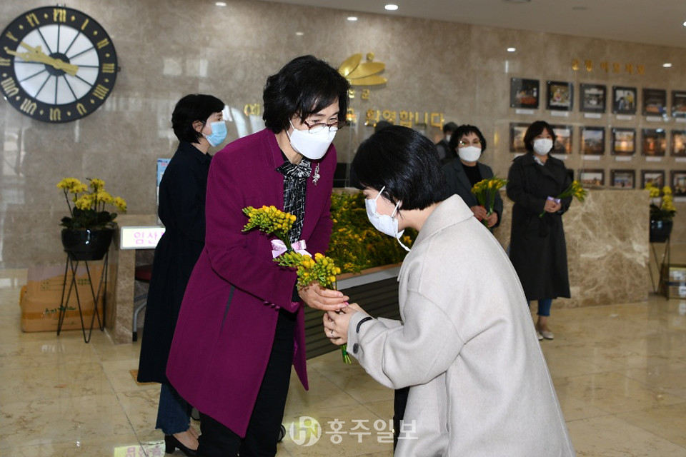 또한 성 평등한 직장문화 조성을 위한 일과 가정 양립을 의미하는 ‘워-라벨(Work-Life Balance)’ 제도 개선을 위한 직원 의견조사도 병행했다. 이밖에 예산군공무원노조에서도 여성 공무원을 대상으로 장미 600송이를 전달하는 등 ‘세계 여성의 날’의 의미를 되새겼다.
