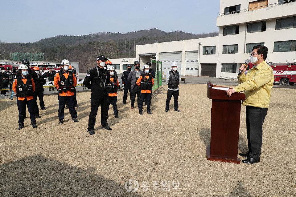 이 자리에서 양승조 지사는 “지난해 울산 주상복합 화재 이후 고층 건물 화재 대비를 위해 70m 고가사다리차량이 각 시·도에 보급됐으며, 충남에도 1대가 배치됐다”며 “그러나 고가사다리차량도 23층 이상 초고층 건물 화재 진압은 어려울뿐더러, 차량이 화재 현장까지 도착해 전개하는 시간도 오래 걸려 신속하고 효율적인 화재 진압이 어렵다”고 말했다.