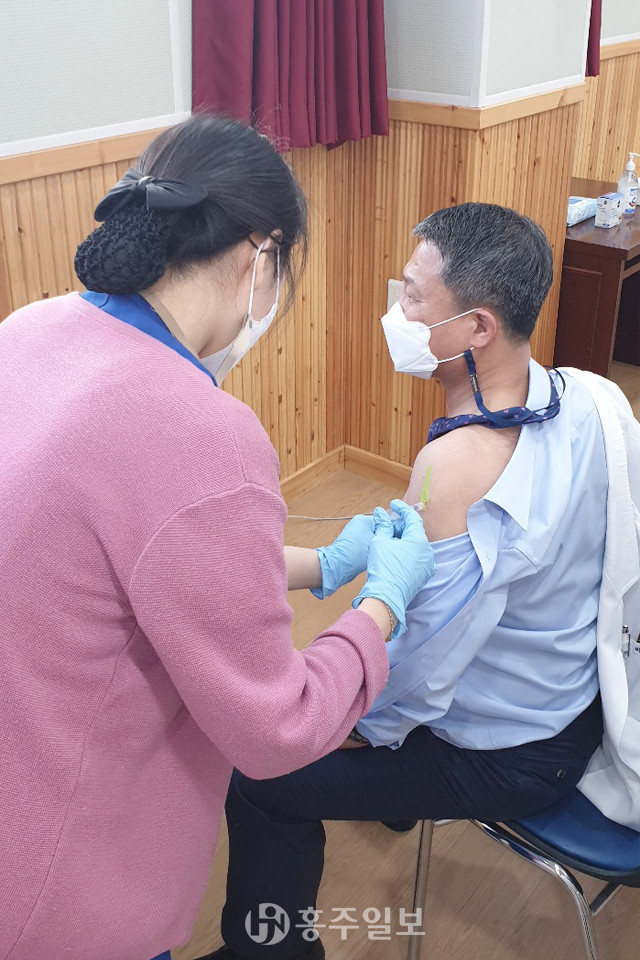 홍성의료원(원장 박래경)은 지난 10일부터 오는 12일까지 3일 동안 원내 의료진과 직원을 대상으로 신종 코로나바이러스 감염증(코로나19) 백신을 접종한다.<사진>