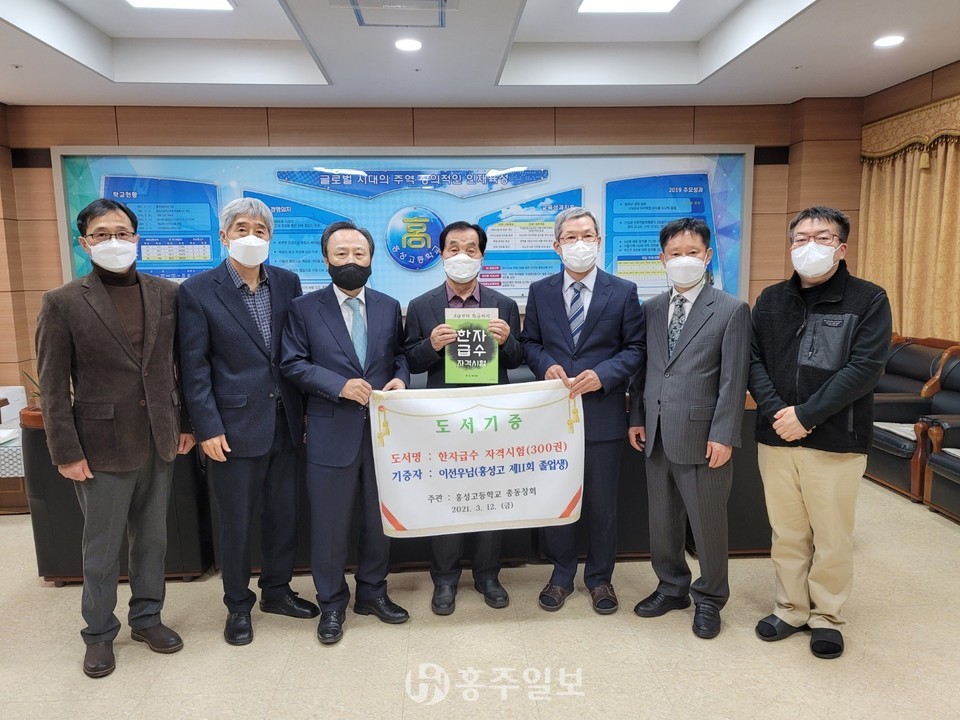 홍성고등학교총동문회(회장 홍일표)는 지난 12일 모교인 홍성고등학교를 방문해 한자교습서 300권을 기증했다.<사진>