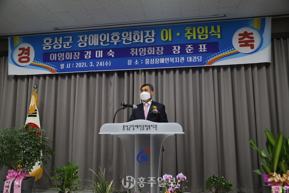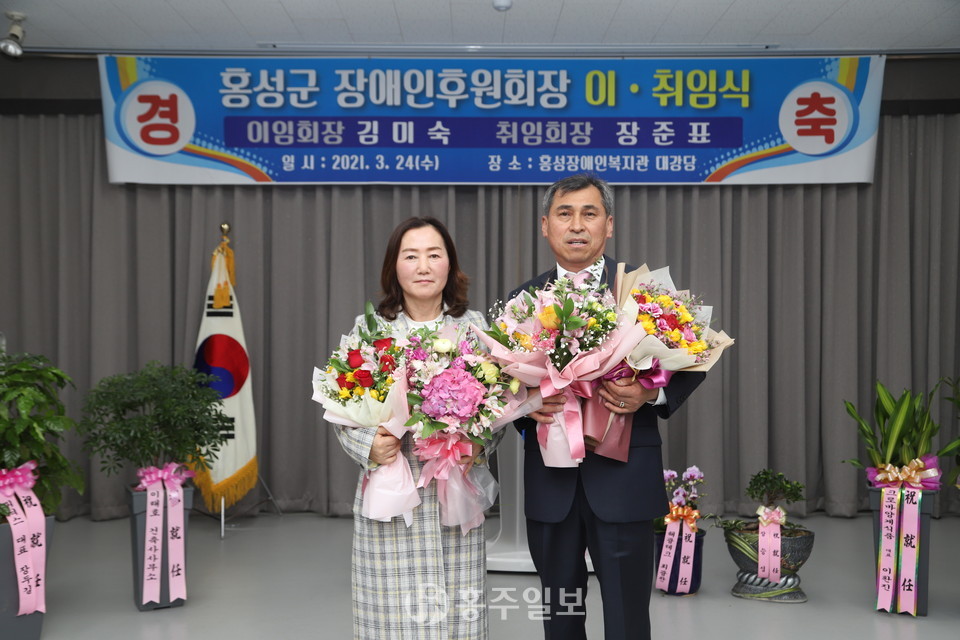 홍성군장애인후원회(이임회장 김미숙·취임회장 장준표)가 지난 24일 홍성군장애인후원회장 이·취임식을 개최했다.