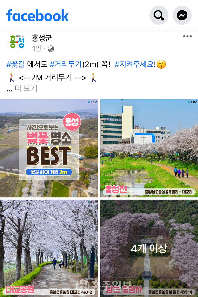 홍성군이 페이스북을 통해 홍보한 ‘홍성벚꽃명소 BEST’로 홍성 남산 충령사와 함께 홍성천, 대교공원, 결성 석당산, 구항 거북이마을, 오서산 벚꽃길 등을 소개하는 일에 대한 ‘부적절하다’는 지적에 주목해야 할 일이다. 관계자들은 다시 한 번 되돌아 볼 일이다.