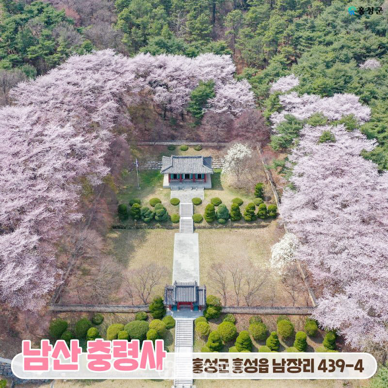 홍성읍 남쪽, 광천으로 향하는 국도변에 자리한 남산은 항상 홍성의 주민들과 함께 하고 있는 산이다. 산의 높이가 220여 미터로 남산에 오른다는 것은 등산을 한다기보다는 산책에 가까울 정도로 경사 또한 완만한 산이다. 이 산에 오르는 길의 꽃조개 언덕에는 독립운동가이자 승려이며 시인인 만해 한용운 선사의 동상이 서 있는 만해공원도 있다. 만해 한용운 선사 동상에 이르면 순국선열들의 독립만세 소리가 귓전을 울리기도 하고, ‘님의 침묵’에 심취하기도 한다. 바로 그곳 만해 한용운 선사 동상 옆 자리에 건립된 충령사는 6·25한국전쟁과 월남전에서 산화한 전몰군경의 호국영령들이 잠들어 있는 곳으로 고개를 숙이면서 자유수호의 길에 대한 생각에 젖는 곳이라는 지적이다.