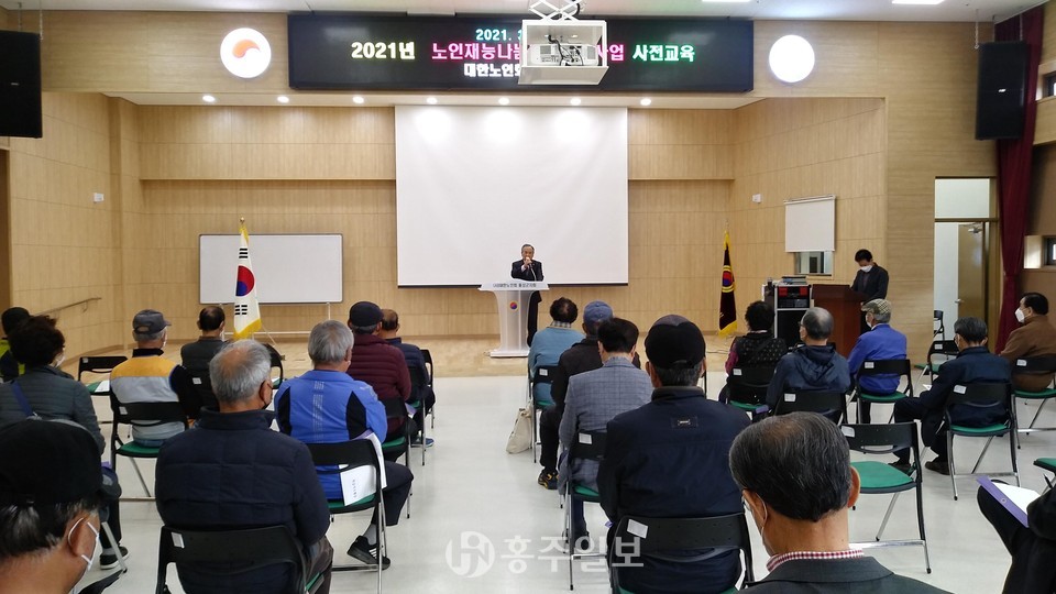 대한노인회 홍성군지회(지회장 조화원)는 지난 19일 재능나눔사업 참여자 사전교육을 실시했다. 이번 교육 대상은 80여 명으로 오전, 오후 2회에 걸쳐 교육이 이뤄졌다.<사진>