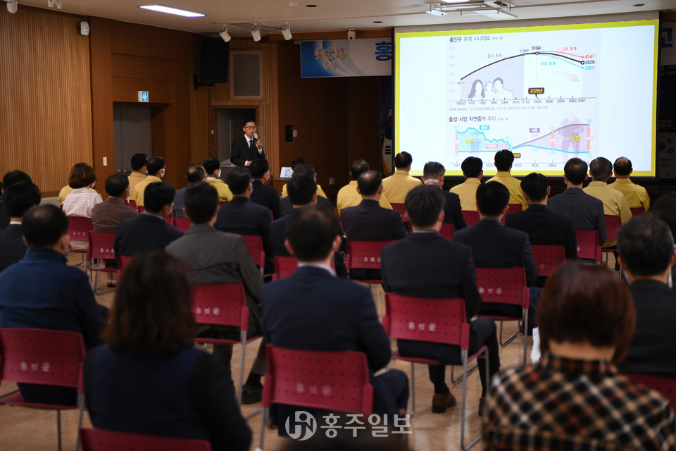 홍성군은 1일 모든 직원을 대상으로 공직자 인구정책 교육을 실시했다. 이번 교육은 인구절벽 위기에 대응하는 공직자의 역할과 지역의 특성에 맞는 정책 방향을 정하기 위해서였다.