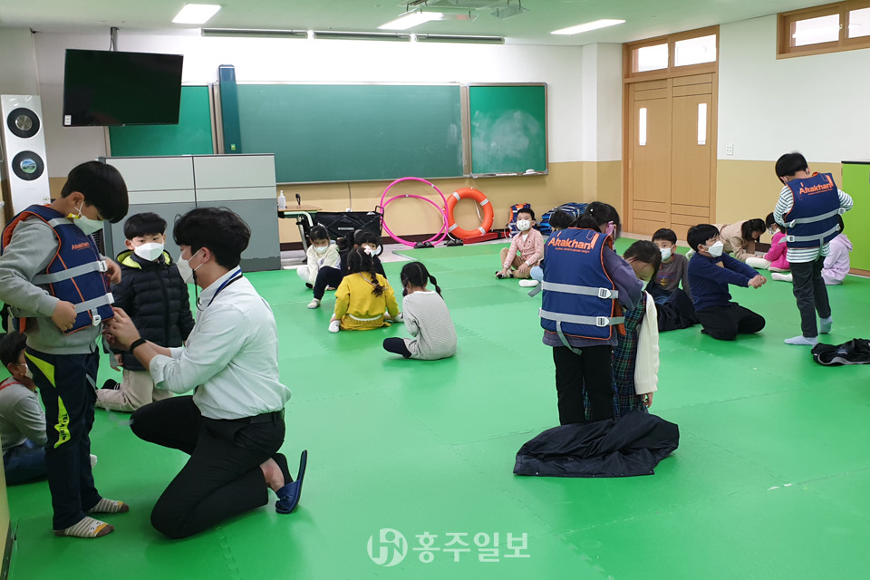 홍성교육지원청(교육장 김성수)은 지난 29일부터 관내 초등학교에 수영강사를 파견해 학생들에게 생존수영(학교에서 하는 실기교육) 교육을 실시하고 있다.<사진>