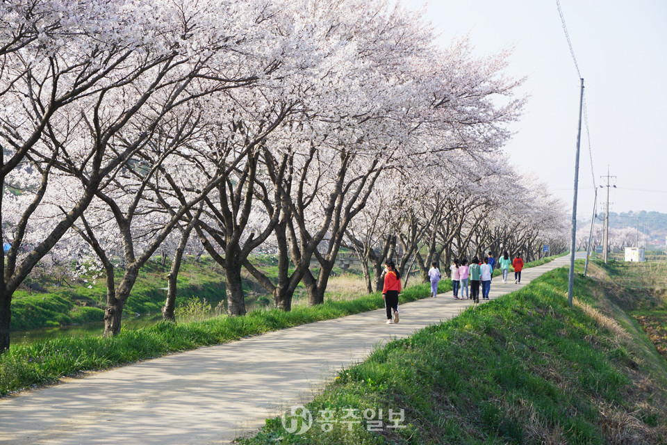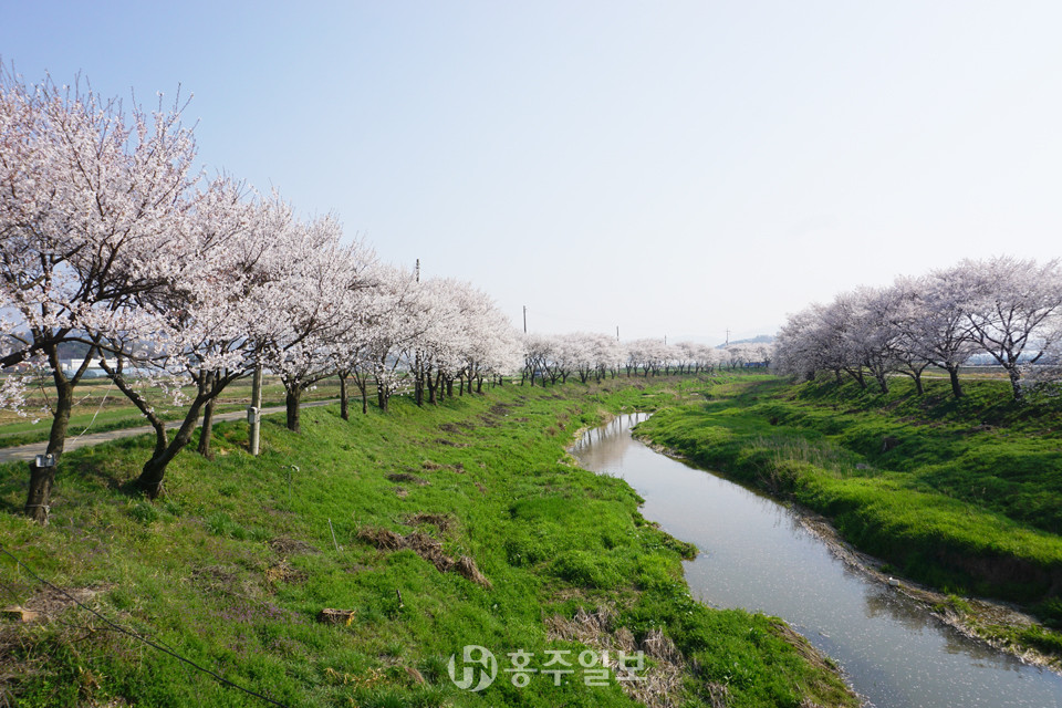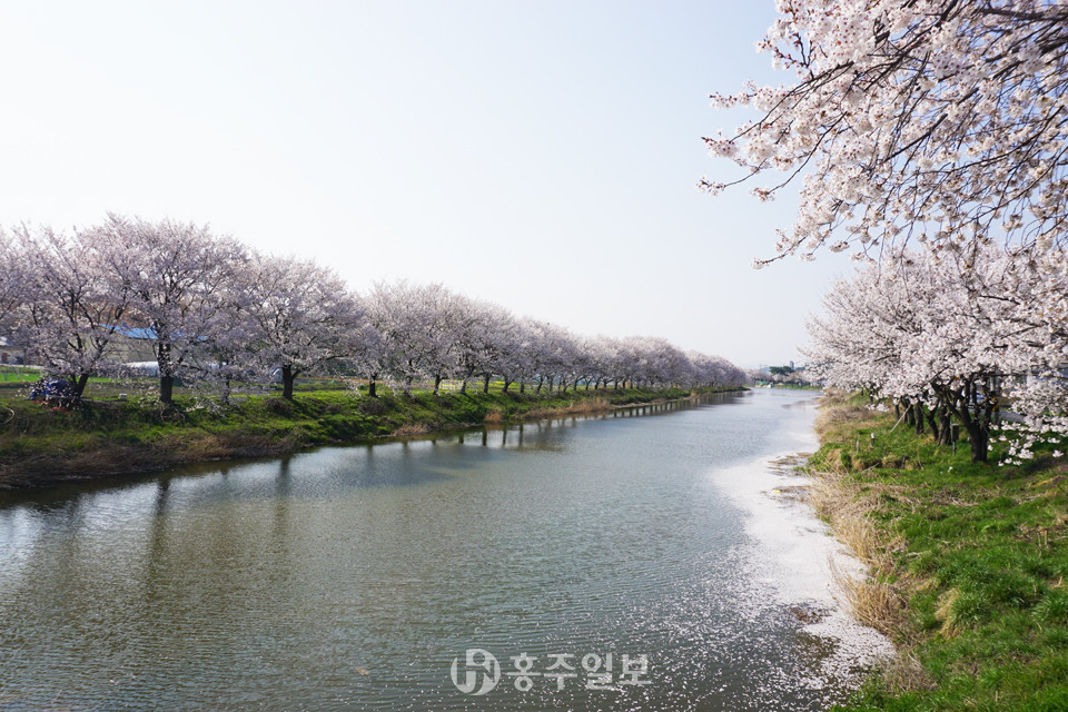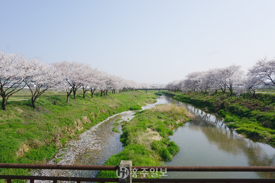 지난 주말 내린 봄비로 많은 봄맞이 벚꽃잎이 떨어져 찰나에 지나간 벚꽃 만개가 아쉬워지던 지난 6일 오후, 약 5km가량 홍동천을 따라 만개한 수백 그루의 하얀 벚꽃이 장관을 이뤘다. 따뜻한 봄바람에 벚꽃잎이 우수수 홍동천 수면 위로 떨어지는 모습에 올해는 유독 짧고도 찬란했던 벚꽃과의 이별이 아쉽게 느껴진다. 20도를 넘어서는 한낮 무더위는 어느덧 여름이 성큼성큼 다가오고 있음을 알린다.