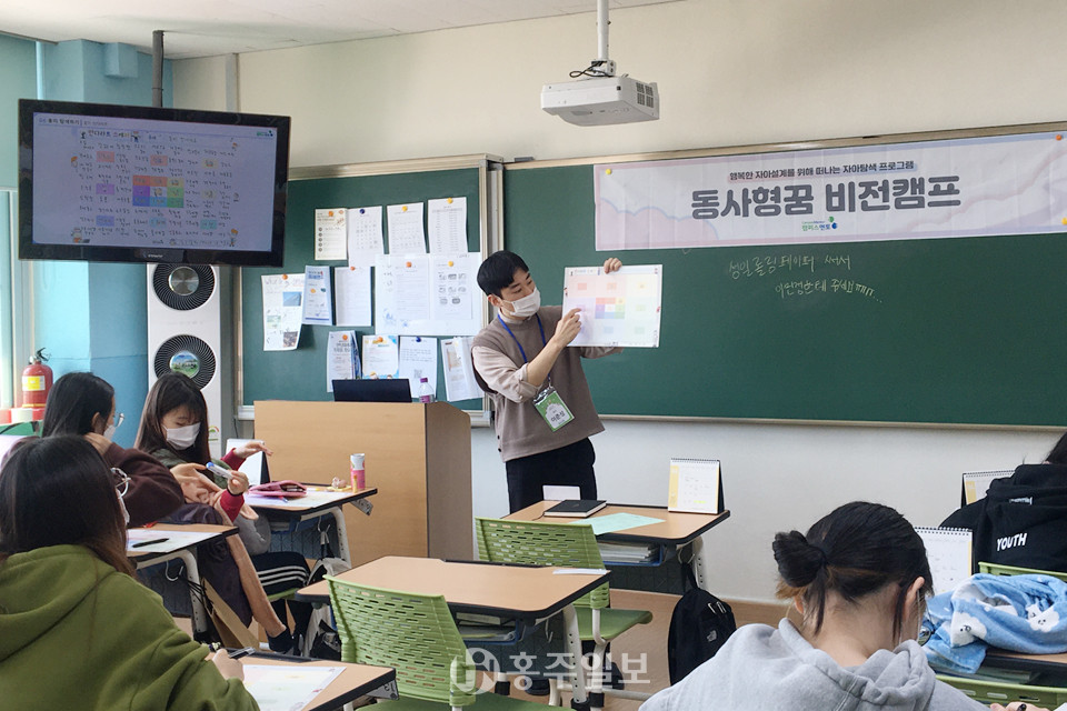 홍성여자고등학교(교장 심상용)는 지난 5~6일 이틀간 1, 2학년이 동사형 꿈 비전캠프에 참여했다.<사진> 이번 동사형 꿈 비전캠프는 프로그램 강사와 학생들이 참여한 캠프활동으로 자신의 적성을 찾아내고 탐색해 보는 활동을 기반으로 해 그것들을 동사형 꿈으로 표현했다.