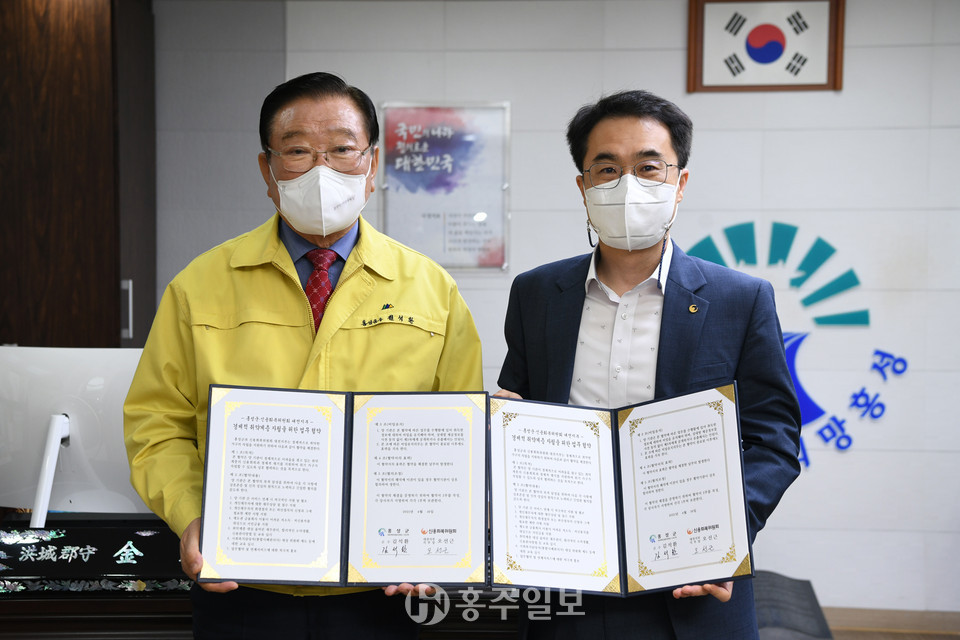 홍성군은 과중한 채무로 생활고를 겪고 있는 취약계층의 경제적 자립과 재기를 지원하기 위해 지난 16일 신용회복위원회 대전지부(지부장 오선근)와 업무협약을 체결했다.<사진>