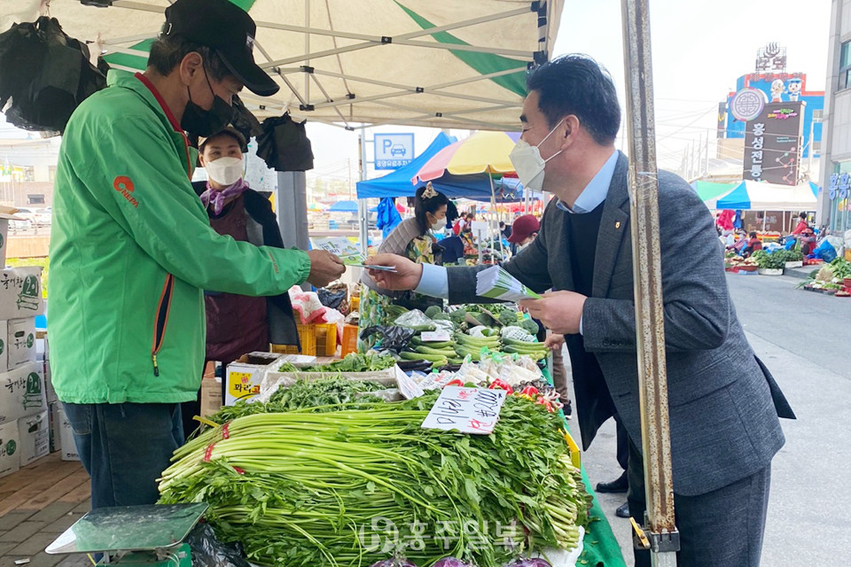 이날 농협 홍성군지부 임직원 20여명은 5일장이 열린 홍성전통시장 일원에서 군민들을 대상으로 일회용품·플라스틱 용품 사용자제, 음식물 쓰레기 줄이기 등 온실가스 배출량을 감소시킬 수 있는 친환경 생활양식에 대한 홍보활동을 진행했다.