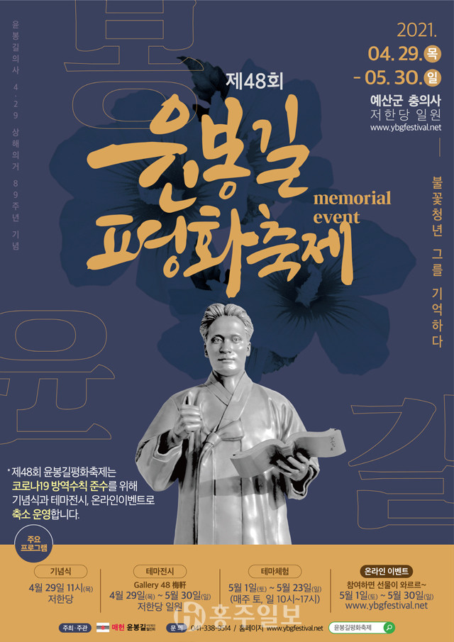 축제 관계자는 “올해 윤봉길평화축제는 획일적인 온라인 축제보다 지역 실정에 맞는 내실 위주의 안전한 행사로 추진할 예정”이라며 “윤봉길 의사의 4.29 상해의거의 숭고한 의미가 국민 모두에게 잘 전달될 수 있도록 노력하겠다”고 말했다.