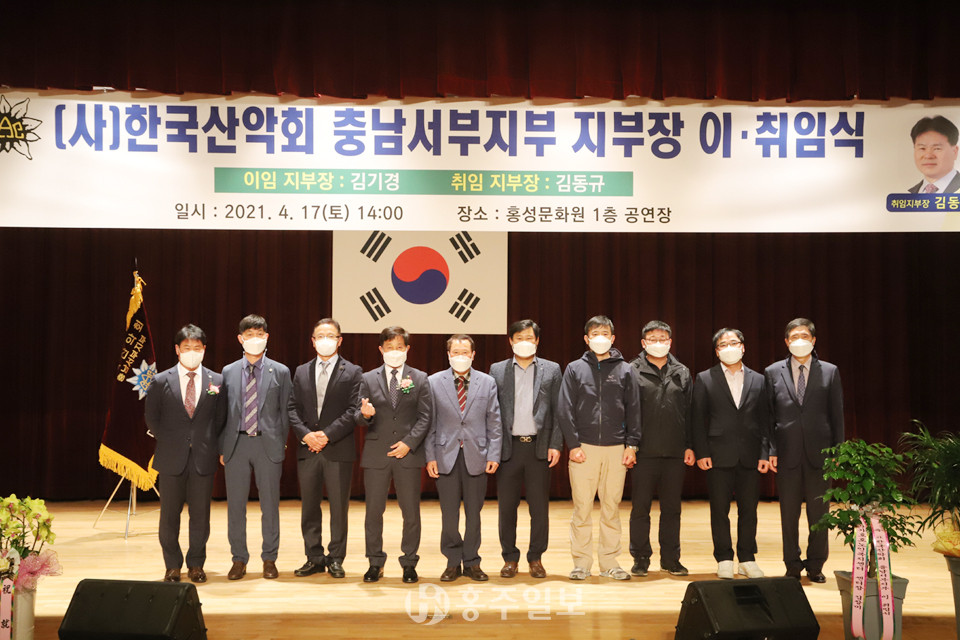 (사)한국산악회 충남서부지부(이임지부장 김기경·취임지부장 김동규)가 지난 17일 홍성문화원 공연장에서 ‘제13·14대 지부장 이·취임식’을 개최했다.<사진>
