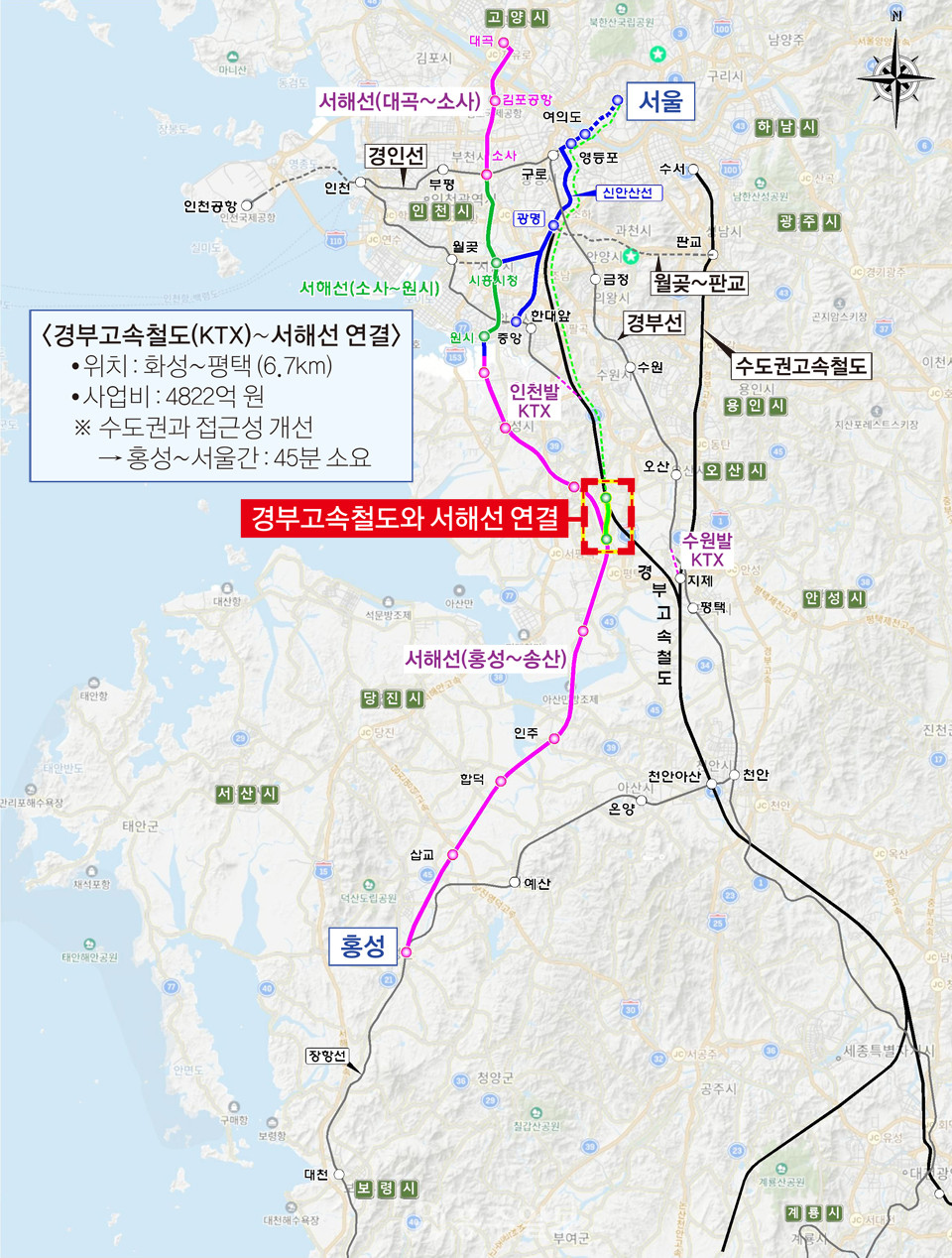 이번 발표에 따라 경부고속선과 서해선을 연결할 시에 기존 장항선은 물론, 신설하는 서해선 복선전철 모두 고속열차를 통한 서울 직결이 가능하게 된다. 이로써 서울에서 홍성은 45분, 보령은 1시간, 서천까지는 1시간 10분이 예상되면서 충남 서해안 지역이 수도권과 1시간 생활권으로 연결할 수 있게 된다.