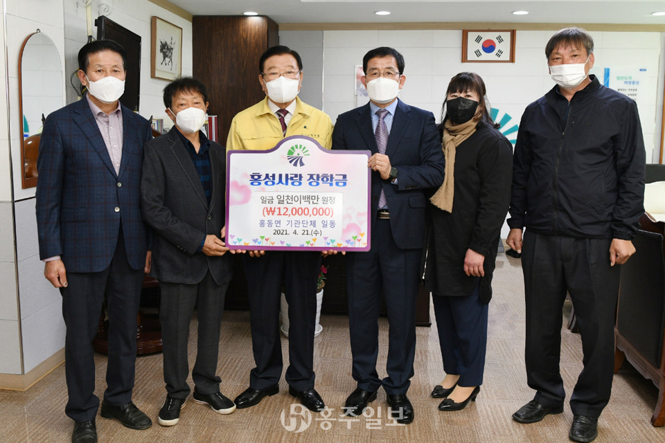 홍동면 각종 기관‧단체가 함께 지역인재 육성과 교육 경쟁력 향상을 위해 홍성사랑장학금 1200만 원을 기탁해다.