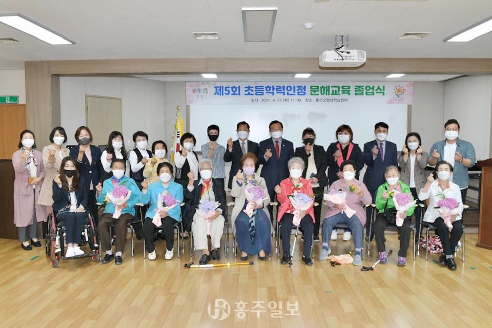 홍성군은 지난 27일 평생학습센터에서 제5회 초등학력인정 성인문해 교육 졸업식을 개최했다.