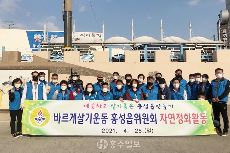 바르게살기운동 홍성읍위원회(회장 오문영) 회원 30여 명은 지난 25일 하상주차장부터 의사총까지 홍성천을 따라 천변 정화활동을 펼쳤다. 한편 바르게살기운동 홍성읍위원회는 관내 소외계층 집 고쳐주기 사업과 정기적으로 정화활동과 공공운동시설 소독봉사활동 등을 펼치고 있다.