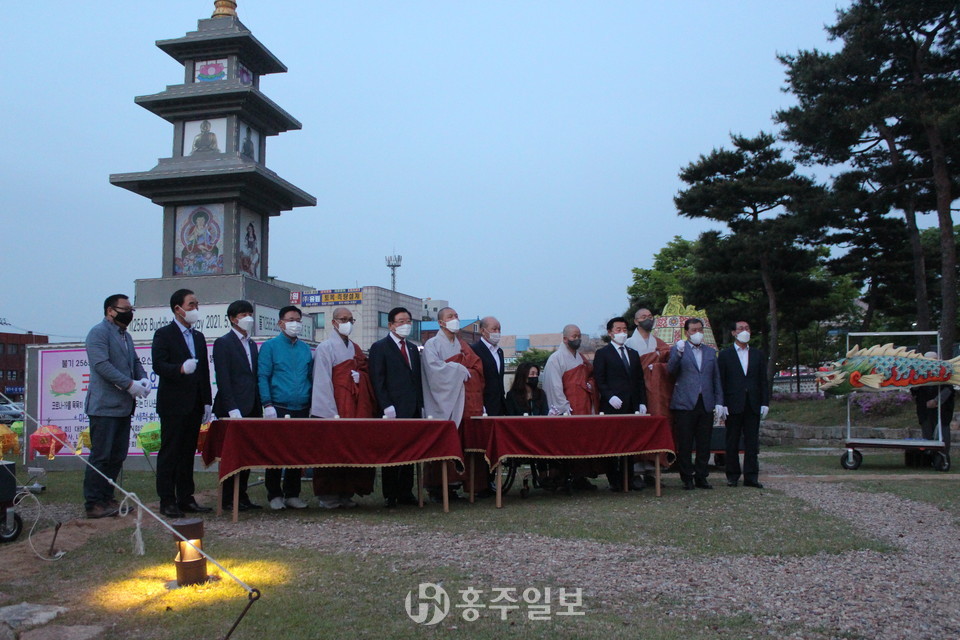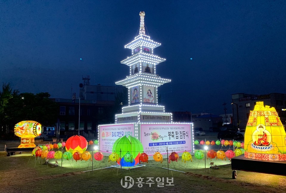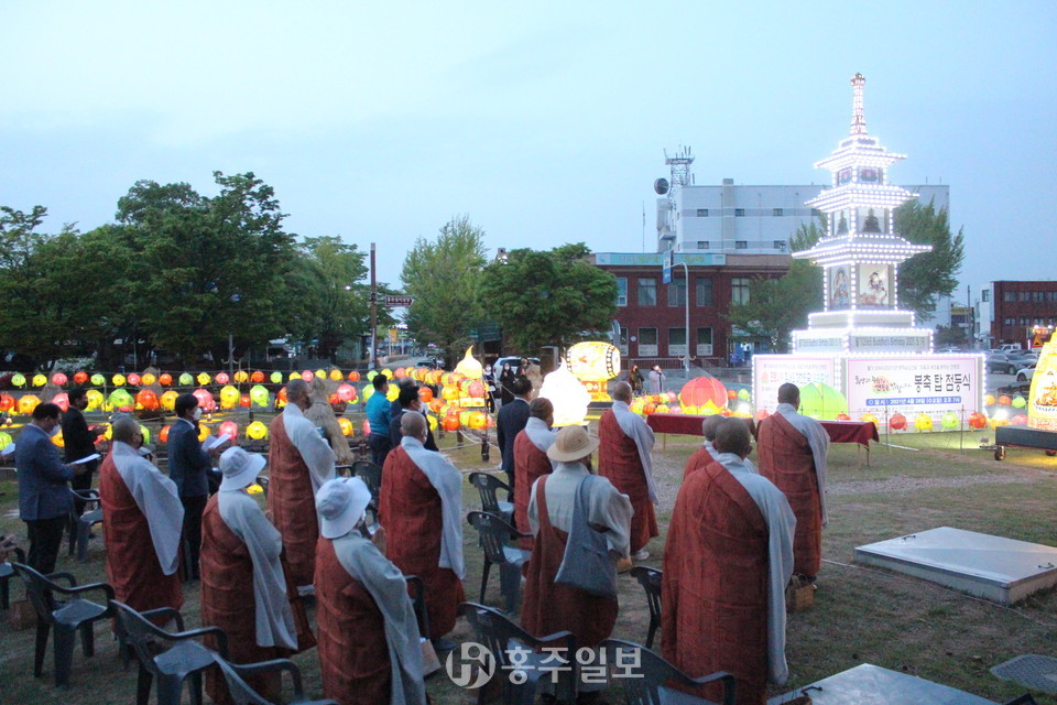 지난 28일 저녁 7시 홍주성 앞뜰에서 불기 2565년을 맞아 ‘마음과 세상을 밝히는 연등회’가 열렸다.