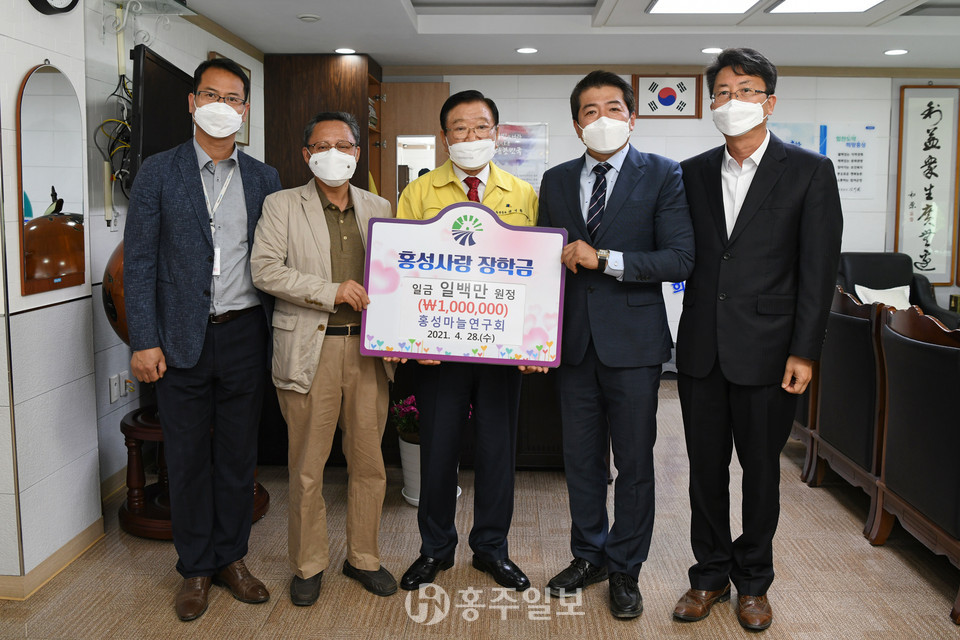 홍성마늘연구회는 지난 28일 (재)홍성사랑장학회에 장학금 100만 원을 기탁했다.<사진>