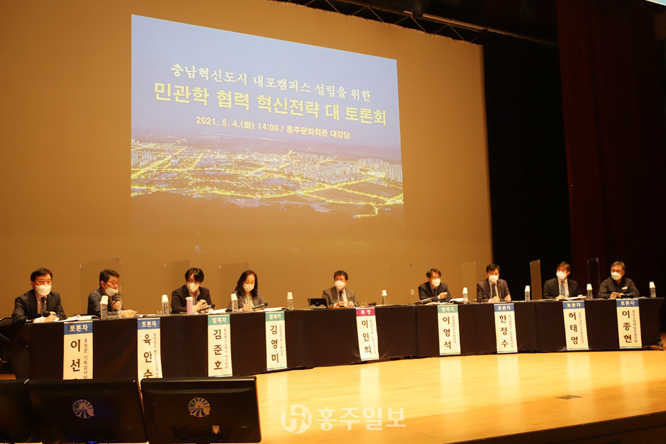 홍성군이 주최하고 홍성군지역발전협의회(회장 최승천)가 주관한 충남혁신도시 내포캠퍼스 설립을 위한 ‘민관학 협력 혁신전략 대토론회’가 지난 4일 홍주문화회관 대강당에서 개최됐다.<사진>