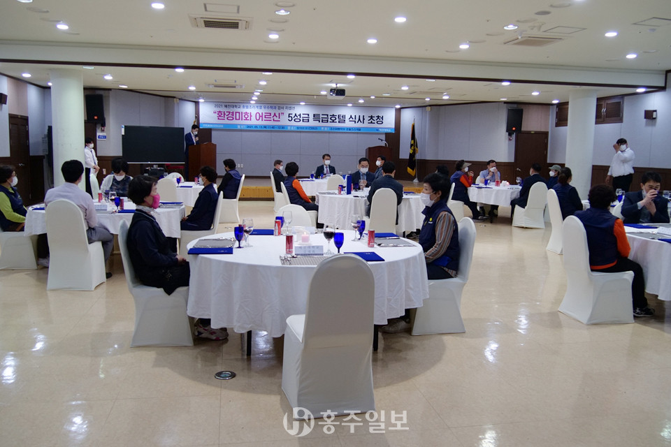 혜전대학교(총장 이세진) 호텔조리계열 교수와 학생들은 지난 13일에 창의관 강당에서 ‘환경미화 어르신’들을 초청해 5가지 코스 요리(한우 안심 스테이크 등)를 대접했다.<사진>
