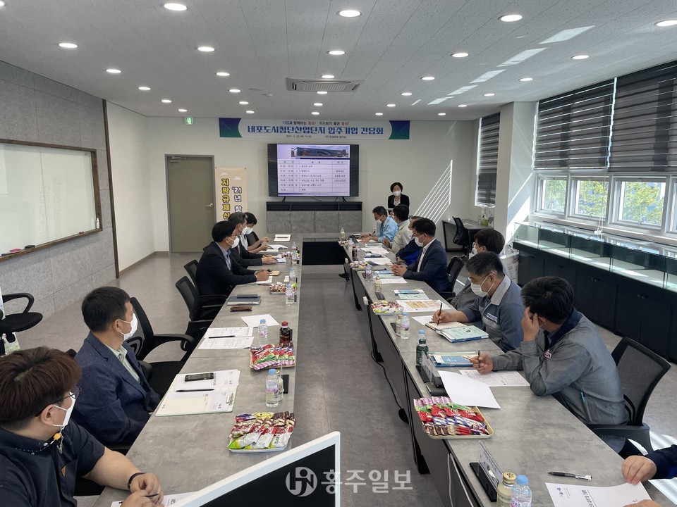 홍성군은 지난 25일 내포도시첨단산업단지 입주기업의 성공적 안착을 돕기 위한 간담회를 개최했다.<사진>