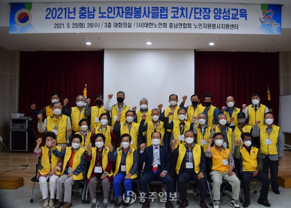 대한노인회 홍성군지회에 소속된 홍주·천태산·광천노인대학 노인자원봉사클럽의 기존·신규 코치 등 50여 명은 지난 26일 대한노인회 충남연합회 대회의실에서 개최된 ‘2021년 충남 노인자원봉사클럽 코치·단장 양성교육’에 참가했다.<사진>