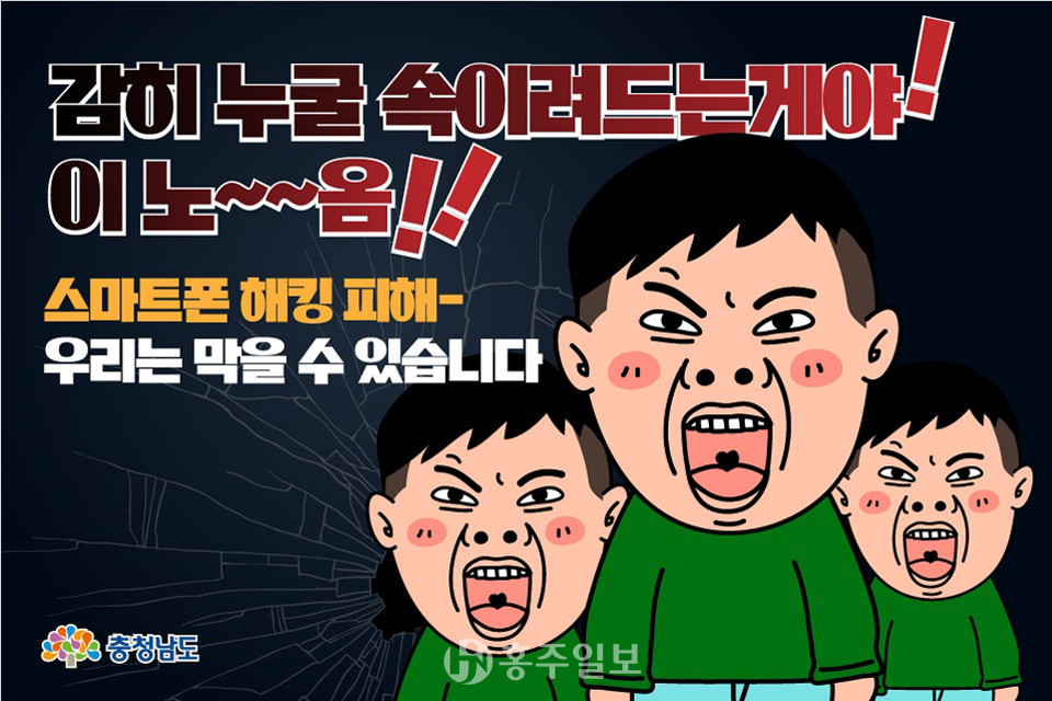 충남도가 최근 급증하는 스마트폰 해킹 공격과 문자 사칭 등을 예방하기 위해 만화로 보는 카드뉴스를 제작했다.<사진>