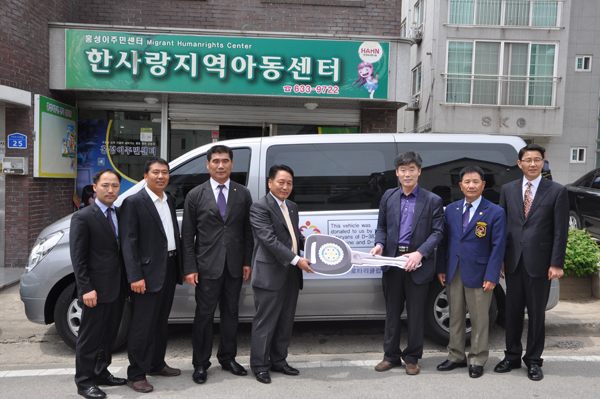 국제로타리 3620지구 홍주로타리클럽(회장 오석환)이 다문화가정 아이들을 위해 설립된 한사랑지역아동센터(대표 유요열)에 매칭그랜트 프로젝트의 일환으로 승합차를 전달했다.
