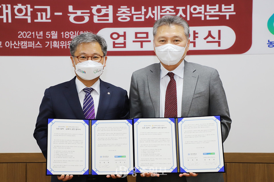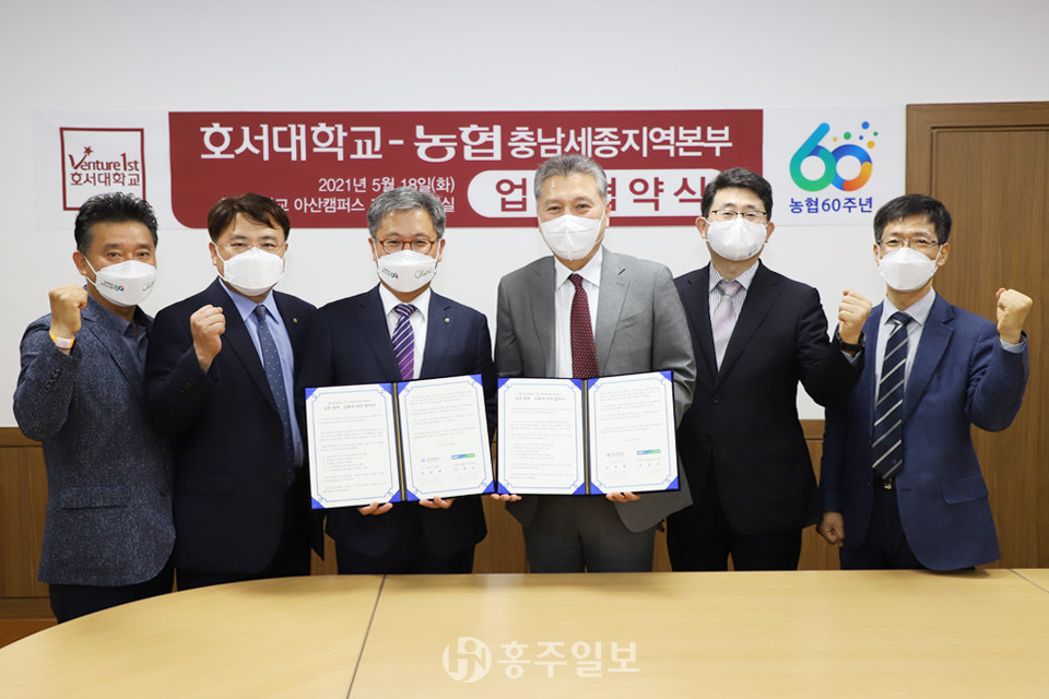 충남세종농협(본부장 길정섭)은 18일 호서대학교(총장 김대현)와 농촌지역 일손부족 극복을 위한 업무협약을 체결하고 일손을 구하지 못해 어려움을 겪고 있는 농가를 공동 발굴해 지원하기로 했다.<사진>