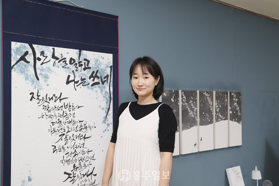 김 작가는 직장에 다니며 월급을 받고 일정하게 일했던 예전과는 다른 삶을 살고 있다. 홍성에 내려온 지는 벌써 3년째다. 그녀는 캘리그라피를 가르치고 아이들의 방과후 수업을 하기도 하고 스승과 함께 배웠던 작가들과 그룹전시를 하기도 한다. 예전보다 자유로운 삶을 살고 있다고 해서 진지함이 덜하거나 고민이 없는 것은 아니다.