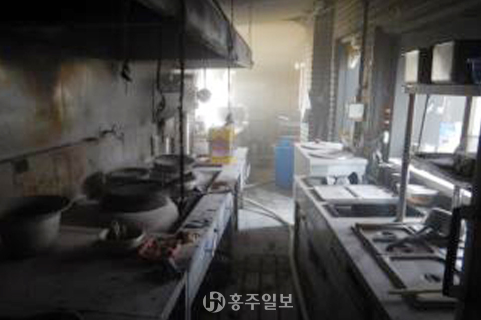 지난 9일 홍성읍 대교리에 위치한 식당에서 발생한 화재를 인근 주유소에서 근무하던 한 주민이 진압해 화제가 되고 있다.
