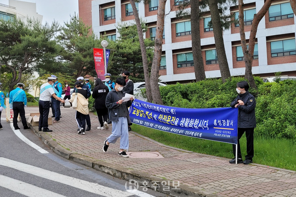 홍성경찰서(서장 조대현)는 지난달 31일 혜전대학교, 지난 2일 청운대학교 등 대학가에서 전동킥보드의 안전한 이용을 장려하기 위한 캠페인을 실시했다. 관계자는 “전동킥보드 이용객이 증가해 관련 사고도 증가하는 만큼 반드시 안전수칙을 준수할 것”을 당부했다.