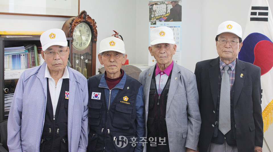 홍주신문은 지난 9일 홍성읍에 위치한 홍성보훈회관에서 ‘6·25전쟁 참전자회 홍성군지회’소속 참전유공자 4인을 만났다. 이날 김대성(1929년생), 염규홍(1931년생), 이석군(1929년생), 김방환(1931년생) 등 4명의 참전용사들에게 1950년 6월 25일 발발해 1953년 7월 27일 휴전한 6·25 한국전쟁에 대한 이야기를 생생하게 들었다.
