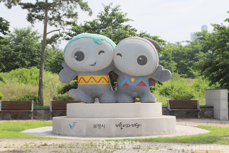용봉산사거리의 보령테마광장에는 보령머드축제의 마스코트 ‘머돌이와 머순이’ 동상이 세워져 있다.