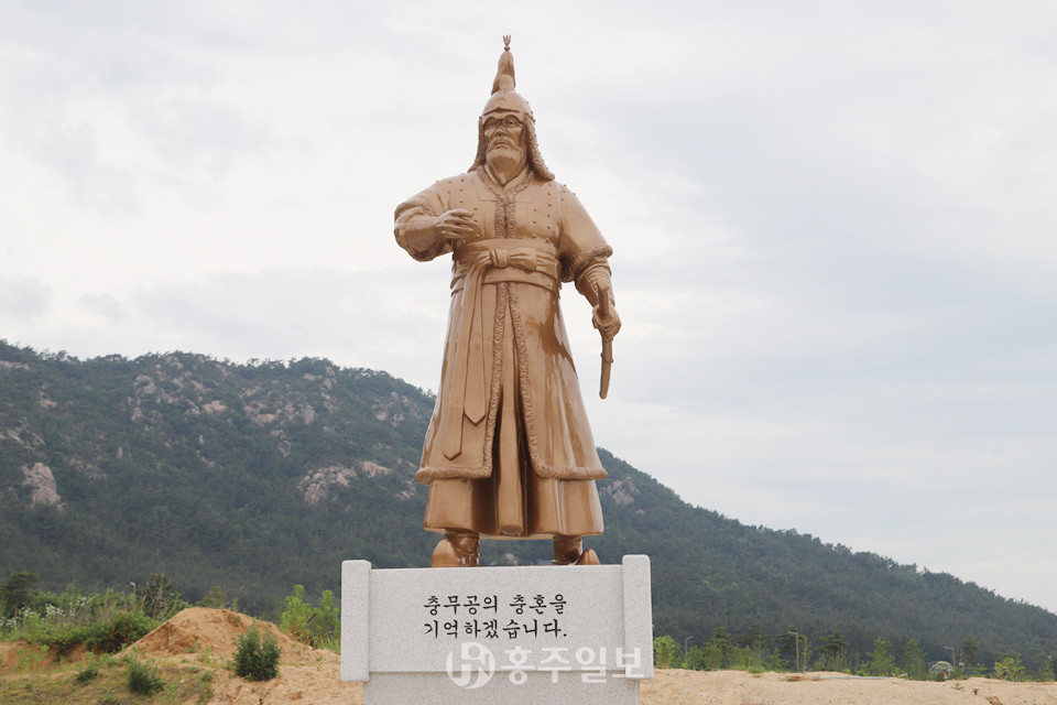 아산시는 조형물을 위해 초상화와 역사적 자료 등 자문 과정을 거쳐 이순신 장군의 모습을 높이 5m, 폭 1.3m 크기의 동상으로 표현했다. 동상 주변에는 주위엔 판옥선과 물결(파도)를 모티브로 구조물이 설치돼 있고 조형물에는 공모를 통해 선정된 ‘충무공의 충혼을 기억하겠습니다’라는 글귀가 적혀 있다.