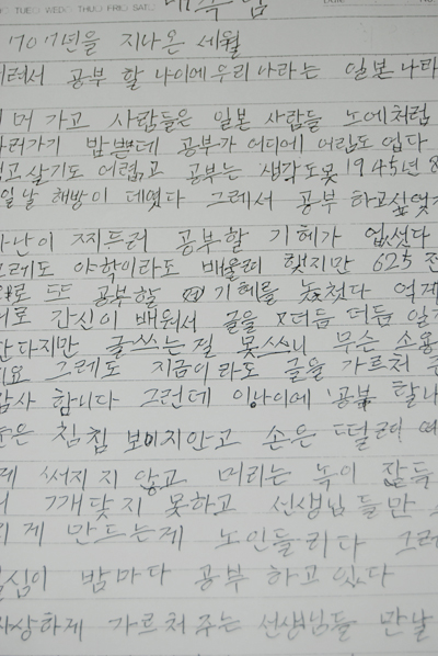 △ 서툰 솜씨로 속마음을 표현한 최숙자 어르신의 글